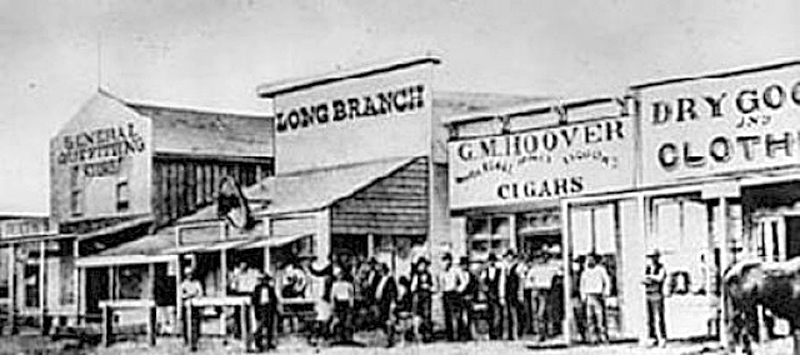 1874年のカンサス州、ダッジシティー、メインストリートに幅を効かすようにサルーンがある。