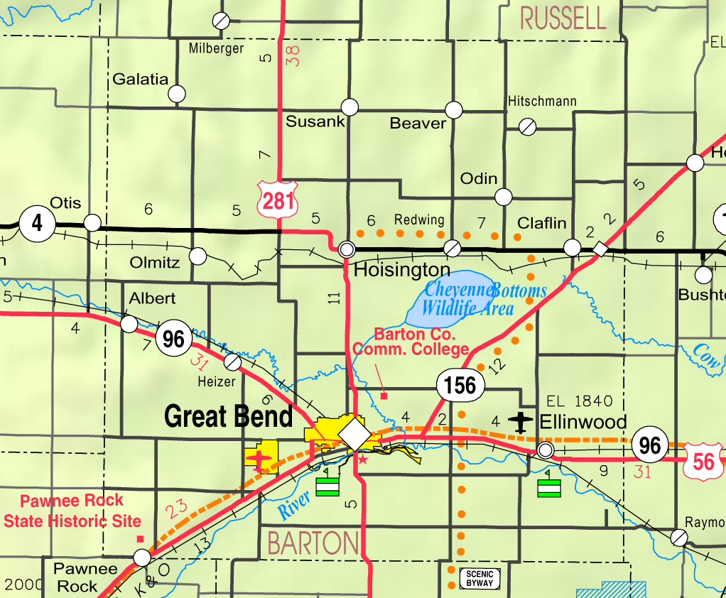 現在、グレート・ベンドと呼ばれ、人口1万5,000人を抱える郡都
