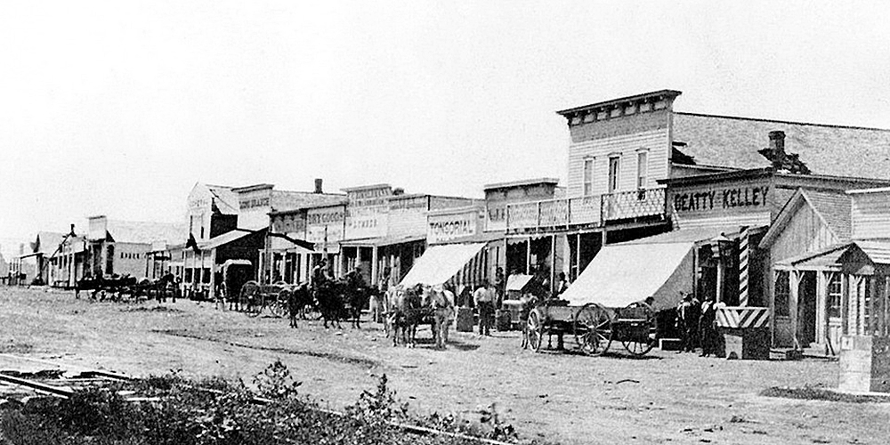 ダッジシティーは現在2万7,800人を抱える屠殺、牛肉パッケージ工場が主な産業の小都市だが、西部開拓時代にはその名を知られる西部の最前線だった。西部への幹線のサンタフェ・トレイルの主要中憩地だったし、鉄道がこの町まで来てからはテキサスからのロングホーン牛を東部に積み込む集積地になった。