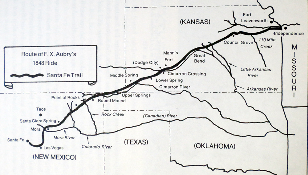 フランシス・ハビエール・オーブリー(Francis Xavier Aubry)と名乗る24歳の小男が、サンタフェの町の広場からミズーリー州のインディペンダンスまで6日間で横断してみせると出発した。名前から判断するに、ヒスパニック、スペイン、メキシコ系のような響きだが、彼はフランス系のカナダ人だった。
