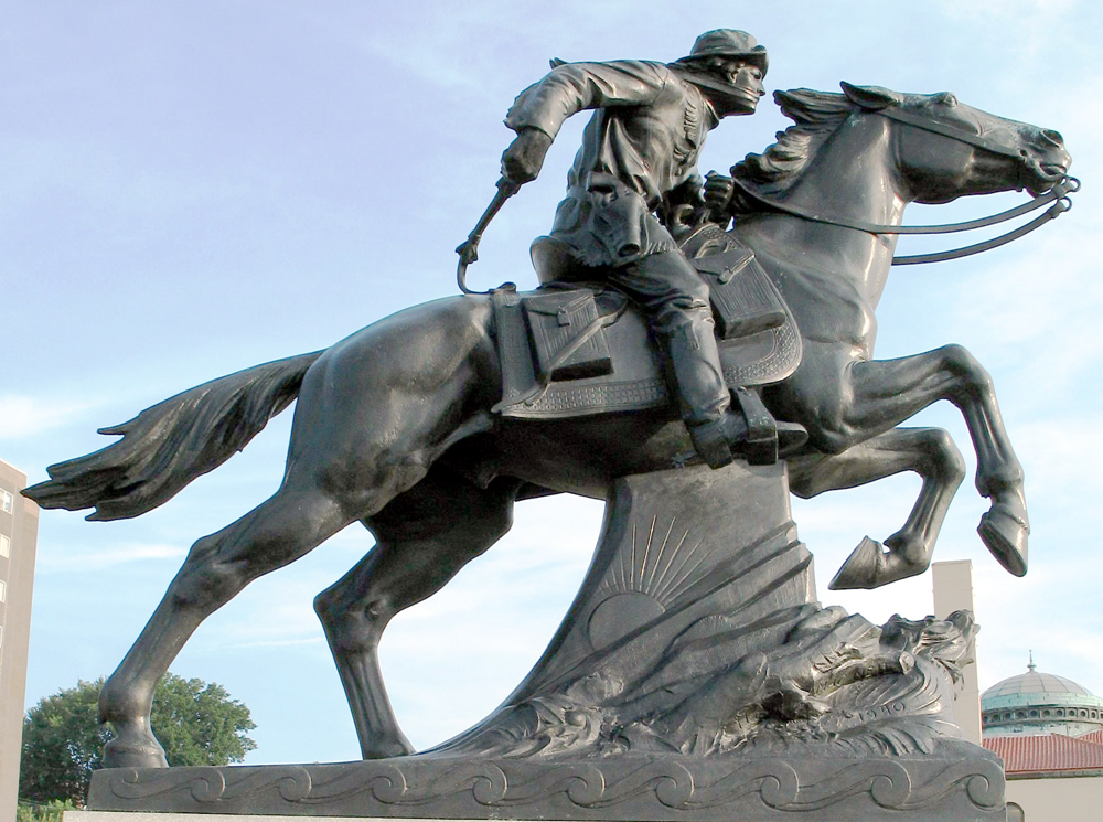 私もほんの一部だがポニー・エックスプレスの道程を走ったことがある。もちろん馬でではなく、ピックアップトラックを走らせてのことだが…。現在のUSハイウエイ36号線がほぼポニー・エックスプレスのルートを辿っており、別名“ポニー・エックスプレス・ハイウエイ”と呼ばれているが、それをピックアップトラックを転がしただけだ。その行程にポニー・エックスプレスの記念碑、バッファロー・ビルの石碑、レリーフが多いのは呆れるほどだ。
