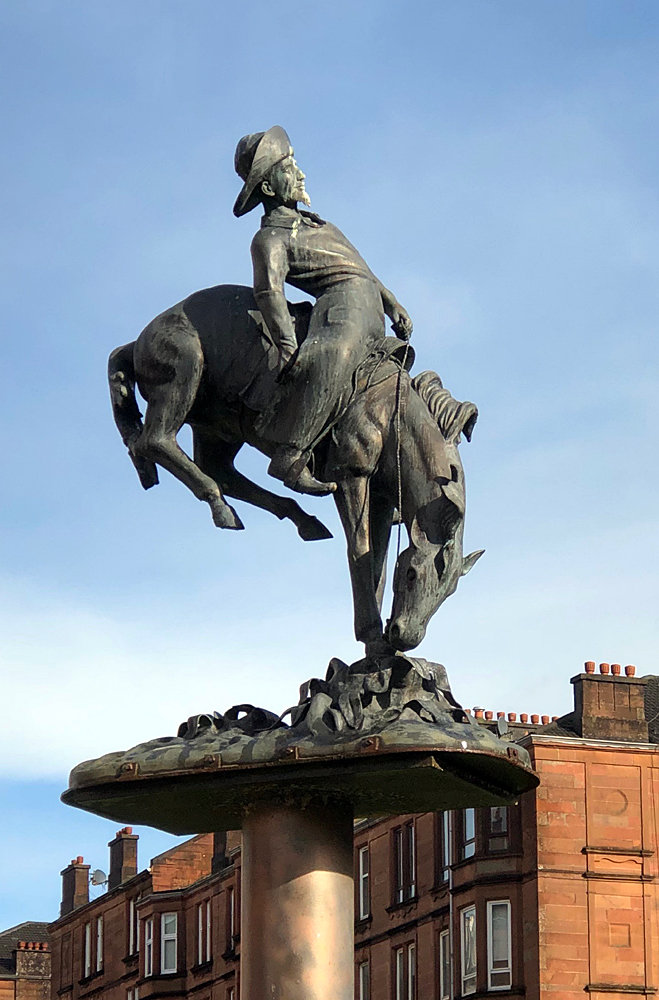 スコットランド、グラスゴー郊外に建てられたバッファロー・ビルの記念銅像