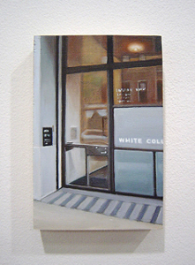 私が通う場所、作品がつくられたアトリエ、作品が展示されているギャラリーつまり見る人が現在作品を見ている空間、などが描かれた絵を観客に見てもらうわけです。ギャラリーの展覧会は入れ替わり、その空間は常に変化するものなので、見る人はそのギャラリーにおける過去の展覧会を私の絵の中に見て、同時に私の展覧会も実際に見ていることになるのです。