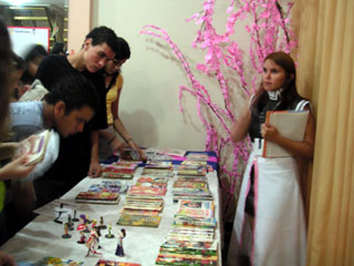 そして会場の売店にはずらーっとマンガ雑誌やアニメのフィギア、同人誌などが並び、みんな真剣な表情で物色している。しかもポルトガル語版の本だけじゃなくて、オリジナルの「月刊マガジン」などもそのまま並んでいたりする。マンガがきっかけになって日本語を勉強し始める人もずいぶんいるという話だし、こういう雑誌を使って勉強しているのかもしれない。