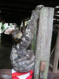 アマゾン奥地に住む人の家で飼われていたナマケモノの親子。