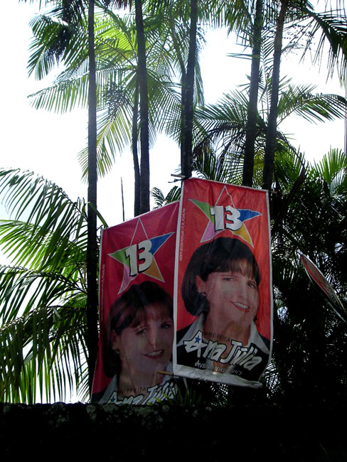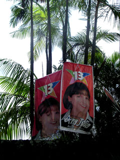 夜になれば、ほとんどコンサートのような集会が開かれ、花火や爆竹が鳴り響き、ステージでは肌も露わな格好のお姉さんたちが踊り、テーマソングを歌い、候補者や支持者たちがマイクで吠える。この手の集会にはかなりの人数の人たちが集まってくる。一度郊外の方でそういう集会に遭遇したことがあったが、日曜の夜9時頃から始まったのに、若者から子ども連れからお年寄りまで、軽く数千人は集まり、みんなで旗を振り、横断幕を掲げながら、盛り上がっていた。