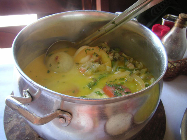 魚介類と野菜、ゆで卵、香草などを煮込んだカウデイラーダはアマゾンの郷土料理。他にも、魚介類、野菜、デンデ油などをココナッツミルクで煮込んだムケカという料理(バイーア州出身)も感動の美味しさだ。ふつう煮込み料理というと冬の寒い日に出てくるようなものだけど、熱帯で汗をかきかき食べるのもオツなものだ。暑いのでビールがクイクイ進んでしまう。