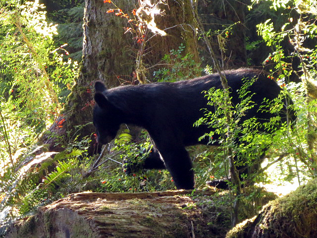 この熊さん、私の方に一向に注意を払わず、野いちご狩りに専念している様子でした。あとでアラスカの野生保護官に尋ねたところ、野生の動物、特に熊は視野が広く、キチンと私達を視野に収めていると言っていました。