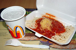 Jollibeeはフィリピン人の出稼ぎ先にはどこにでもある。ベトナム、ブルネイ、香港、グアム、サイパン、もちろんアメリカ本土にもある。フィリピン人好みの甘い味つけが特徴。スパゲッティのミートソースも、フライドチキンのソースも甘い。バナナケチャップが入っているのだ。