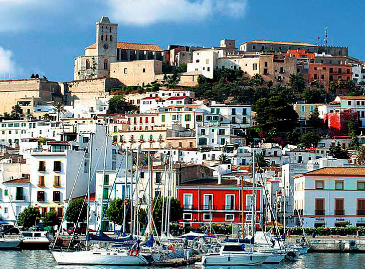 イビサ港から旧市街を望む