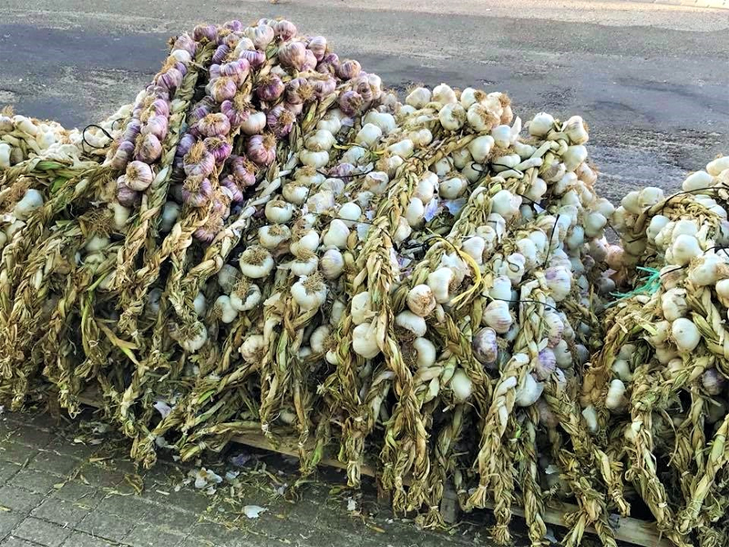 束ねたニンニク(Ajo)は台所に吊るして使います