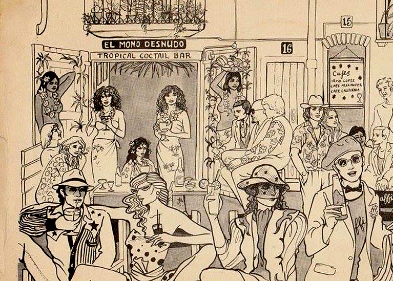 イビサの港前の一等地に『エル・モノ・デスヌード』(El Mono Desnudo;裸のサル)というファッショナブルなカフェバーを開いているマイケルはガールフレンドや友達を連れ、ここからウィンドサーフィンで海に乗り出していた。そしてチョイチョイ、『カサ・デ・バンブー』に立ち寄ってくれた。