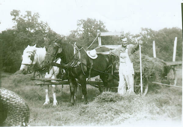当時いた馬が年老いて耕作馬として役に立たなくなってきたのでしょう。お祖父さんとウイルカーおじさんは連れ立って村のステートフェアに出かけ2頭の馬を買ってきました。なんでも、隣の村のスティーブンスさんのところでもてあましていた、性格も乱暴で訓練のできていない、性悪だと評判の、誰も欲しがらない馬を、たいそう安い値段で譲ってもらったようです。この2頭を買うときお祖父さんはためらったようですが、ウイルカーおじさんは強く勧めたそうです。