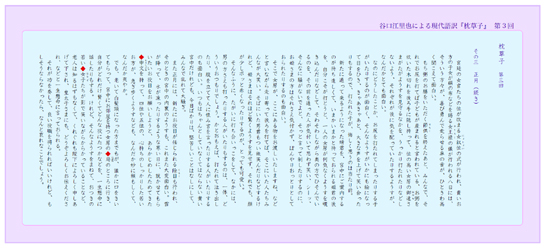 ■連載完了コラム 現代語訳『方丈記』~鴨長明の『方丈記』を表現哲学詩人谷口江里也が現代語訳に翻訳 [全18回] 現代語訳『風姿花伝』~世阿弥の『風姿花伝』を表現哲学詩人谷口江里也が現代語に翻訳 [全63回] 岩の記憶、風の夢~my United Stars of Atlantis [全57回] もう一つの世界との対話~谷口江里也と海藤春樹のイメージトリップ [全24回] 鏡の向こうのつづれ織り~谷口江里也のとっておきのクリエイティヴ時空 [全24回] 随想『奥の細道』という試み ~谷口江里也が芭蕉を表現哲学詩人の心で読み解くクリエイティヴ・トリップ [全48回] バックナンバー
