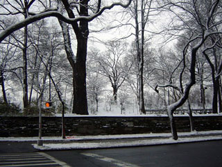 昨日の大雪で、奥に見えるセントラル・パークは真っ白なのよ