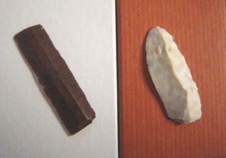 オブシディアン(左)とチャート(右)どちらも左側が刃