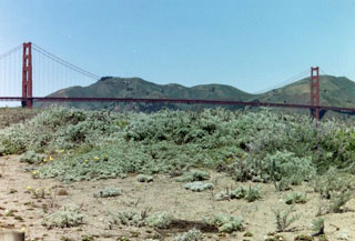 そういえばこのゴールデンゲート・ブリッジは自殺の名所としても有名で、自殺件数は開通以来2,000件を超え、年間平均約20人にも達するのだそうだ。ジョセフ・パーマン・ストラウスの設計による1933年の着工以来、サンフランシスコ名物の霧、強風、海流に苦戦しながらも、4年半の歳月をかけて1937年5月に完成したこの橋は、吊橋部約1,280mで、1959年までは世界最長を誇っていた。そんなサンフランシスコの顔ともいえる建造物なだけに、ここから眺める景色にふと魔がさすのかもしれない。