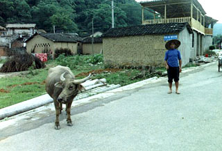 自動車などほとんど通ることのない道を、水牛やアヒルが歩く水田や、奇峰を脇目にのんびりとサイクリングする時間は、香港、上海、北京と大都会続きであったこの旅に、初めて土に足がついた時間を与えてくれるものだった。