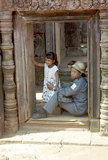 2日目の夜にレストランで食事をしていると、日本語の流暢な若いカンボジア人男性が寄ってきて、「私は日本人をガイドするのが大好きだから、アンコールをガイドさせてくれないか?」と尋ねてきた。ガイドとドライバーの料金を合わせても、かなり安い値段を提示してきたので、怪しいなあと思いながらも、なんでそんなに安いのだと尋ねたら、「日本語の勉強をしたいから、日本人には特別料金を提示しているのだ」と言う。もちろん断ってもよいのだが、さすがに3日目にはアンコール観光をはじめないと、それほどここでのんびりしている時間もなかった。