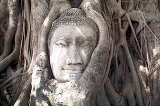 アユタヤを代表するアイコンの、ビルマ軍によって町が占領された時に首を切り落とされた首なし仏像や、生命力溢れる南国の木の幹に飲み込まれるように半ば埋まっている切り落とされた石仏の頭などを見学しながら、この古都での時間を過ごした。