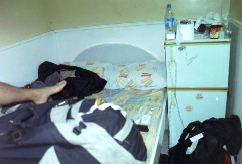 基本的に宿の外部からの侵入者に備えてというのもあるが、これは宿の主すら安心できないという経験からもきている。部屋は3畳程の広さにベッド、使い物にならない冷蔵庫とテレビが一つずつ、それに東南アジアによくあるタイプのトイレの真上にシャワーの蛇口がついているもの。これは狭さとの戦いから生まれた傑作的アイデアで、シャワーを浴びれば便器の汚れも同時に洗い流せるという優れもの。もちろん西洋式の場合は、シャワーの後だとビショビショの便座を覚悟しなければならないのだが。