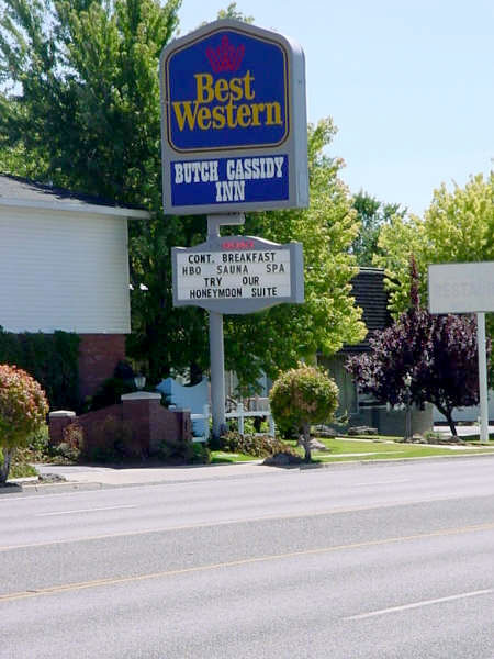 村にはブッチの足跡は何も残っていない。村の中心部、郵便局の南隣に小さな手入れの行き届いた公園があり、奥まったところにいかにも時代物の丸太小屋が残っている。町のインフォメーションセンターで、ボランティアの枯れたおばあさんがヒマそうに座っている。ブッチのことを尋ねるとそっけなくここには何も残っていないというだけだったが、モルモンの入植者のこと、1930年に焼け落ちたモルモン教会のことを訊くと急に生き返ったように語り出した。そのまま居続けるとモルモン教に入信させられそうなので、早々にご辞退した。