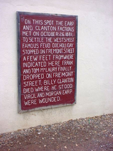 第一に、事件はOK牧場で起こらなかった。決闘はツームストーンの町を東西に走るフリーモント通りと3番通りの角近く、フライ写真館の西隣の空き地で起こった。OK牧場はなんとも響きの良い名前だが、事件の起こった空き地から50メートルほど離れたところにある馬の一時預かり所、今流に言えば駐車場で、広々とした牧場というイメージからは程遠い狭い牧舎だった。