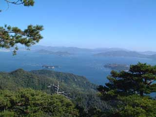 2本目のロープウェーに乗り継ぐと尾根を越え、瀬戸内海を眺望できる。穏やかな海に大小の島が浮かんでいる。これはまさしく瀬戸内海だ。海には簗を広げたところがあり、その横を小さな客船が通り過ぎていく。瀬戸内海は、鉄道や道路と同じように船という交通手段が発展している地域である。終点の近くの展望所で、斜めに差し込む陽射しに眼を細めながら海を眺めた。ちょうどお昼を過ぎた頃で、ようやく今日の折り返し点を越えた。