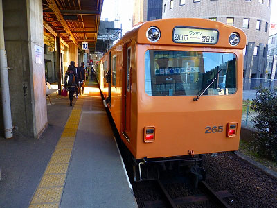内部線の地上駅へ歩いて行く。昨日は駅ビルから階段を上がって降りてという道順だった。あれはかなり面倒だ。今日は地平を歩いて行く。開店前の近鉄デパートの前を通り、スクランブル交差点を渡り、近鉄の高架下を通り抜ける。昨日、予習しておいた甲斐があって、迷わずに改札口に着いた。通勤客が出てくる。学生さんたちが吸い込まれる。多くの都市鉄道で見かける風景であった。昨日は閑散としていたホームが混雑している。