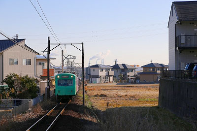 乗ってきた通学電車を見送って、帰りは通勤電車だ。乗客は少なく、なんとか座席が埋まる程度。進行方向を眺めれば、晴天の空の向こうに四日市工業地帯の煙突が見える。煙は白い。煤煙ではなく、蒸気の白さである。その青空と白い煙を見て、私は四日市市が鉄道の存続にこだわる理由に思い至った。