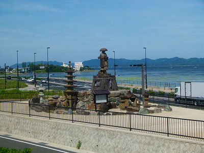 遠くを観ていたら、いきなり近くを大きな銅像が通り過ぎる。交通安全厄除大神と書いてあった。国引き神話に交通安全の神は居ただろうか。