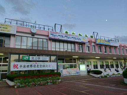 北上駅は薄暗く、月が目立ってきた
