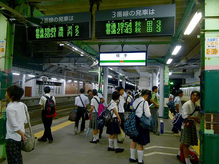 帰宅の高校生で賑わう秋田行きホーム