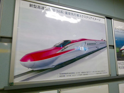 次世代"こまち"車両のデザインを掲示。時代の流れを感じる