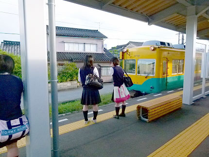 車窓は薄日の射す富山市街を映している。休日のはずだが、越中荏原駅には上り列車を待つ女学生が数人。クラブ活動だろうか。この駅は今年3月に改築したので、ホームも駅舎も新しい。旧駅舎の姿もファンには人気だったようだけど、この駅は駅員が常駐している。福利厚生のためにも新築がいい……となると、昔ながらの駅舎は無人駅にあり、ということだろうか。しかし無人なら朽ちていくだろう。無人駅を再建するわけはないから…