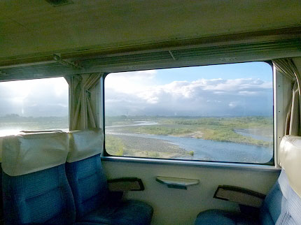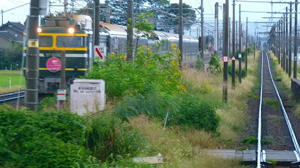今ごろ向こう側では、目覚めた人たちが車窓を見て、元西武鉄道レッドアローとのすれ違いにビックリしているかもしれない。いや、関西在住の人が多いだろうから、普通電車の元京阪電車のほうが懐かしいかもしれない。元京阪とはいえ、色がまったく違うから、気づく人は少ないだろうか。トワイライトエクスプレスは、去年、札幌行きに乗った。今度は上りの大阪行きに乗ってみたい。そして向こうからこの電車を眺めたい。