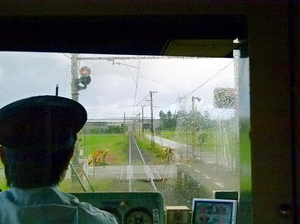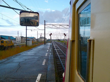 旧国鉄本線と並行する私鉄がある場合、旧国鉄本線は長距離輸送を担うため駅間が長く、私鉄側は地域輸送が主なため駅数が多い。それはこの区間でも例外ではなかった。中滑川駅は地鉄だけの駅。次の滑川は北陸本線と乗り換えが可能だったけれど、その次の浜加積は地鉄のみだった。この間、ずっと運転台の後ろで線路を見守っている。北陸本線の列車が来ないかな、と思う。