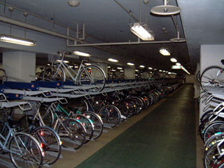 腹が満たされ、あたりを見渡すと駐輪場入り口がある。ちょっと覗いてみるとかなり広い。2段式の自転車置き場が遠くまで並んでいる。いったいここには何台の自転車が入るのだろう。呆然と眺めていると、奥の方に警備員らしき人がいた。