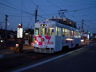 地上はまだ暗い。目を凝らすと、大通りの向こうから光が近づく。そして路面電車特有のキーキー、ゴトコドという音が大きくなる。やってきた車両はかなり古いものだった。しかし塗装は広告がらみできれいに化粧しており、車内も塗りたてで清潔感がある。丁寧に整備されている様子がわかり、嬉しくなる。