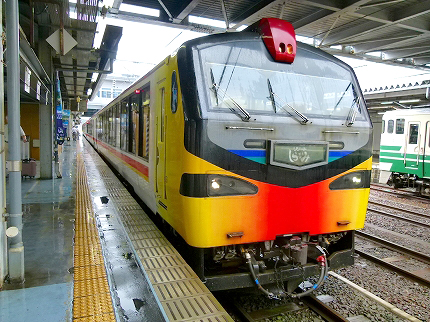 秋田駅着08時13分。これから乗る『リゾートしらかみ1号』は08時24分発。10分間で駅弁を調達し、車両の写真を撮る。リゾートしらかみには専用の車両が開発されており、くまげら、ブナ、青池、という愛称が与えられている。このうち青池は1年前から新型のハイブリッド気動車になった。くまげら、ブナはキハ40系からの改造車だ。