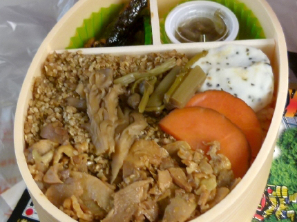 私は「秋田比内地鶏弁当」で、M氏は「鶏わっぱ」。どちらも鶏スープで炊いたご飯に鶏そぼろをのせ、メインのおかずは鶏の照り焼き。鶏肉好きの私には涙が出るほどうれしい内容だ。私はカロリーダイエット中だが、旅の間は解禁する。だから久しぶりの肉食である。そもそも鶏肉系の駅弁は滅多にはずれがない。鶏肉をまずく調理する方がどうかしている。つまり私の弁当はとても美味で、M氏の弁当も美味であろう。私はわかっているから「ひとくちちょうだい」なんて言わない。