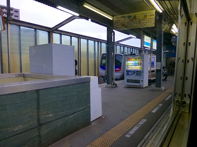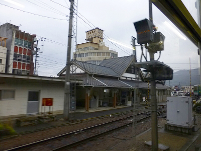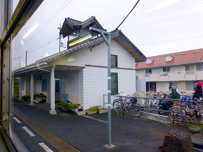 雨は小降りになったようだ。たった1両の気動車は、どの駅でも屋根のないところに停まる。わざわざ屋根のない位置を選んでいるように見える。停止位置は車両を信号に検知させる都合もあるかもしれない。もう少し工夫してあげてもいいと思う。