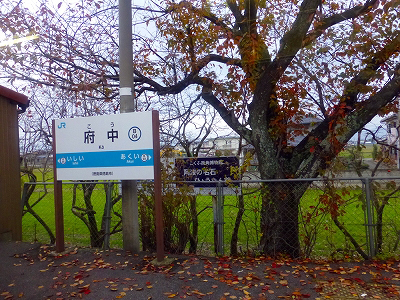 府中駅、駅名標の後ろの看板は“こくふ街角博物館”