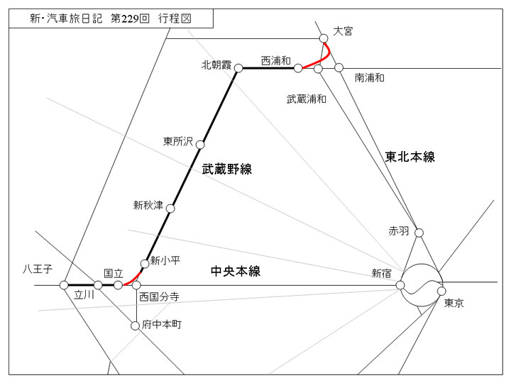 快速列車むさしの2号は、東北本線の大宮から南下し、武蔵野線を経由して中央本線の八王子に至る。一般的に大宮から八王子へ向かうには、京浜東北線で南浦和、あるいは埼京線で武蔵浦和に出て武蔵野線に乗り換え、西国分寺で中央線に乗り換える。または湘南新宿ラインで新宿に出て中央線に乗り換える。それをむさしの2号は乗り換えなしで直通してくれる。便利な列車だが、朝夕に1往復ずつしか走らないため地元でも"知る人ぞ知る"存在である。ところが関東の鉄道ファンにはよく知られた列車だ。走行ルートの珍しさに加えて、途中、貨物列車用の連絡線を走るという興味深い体験ができるからだ。