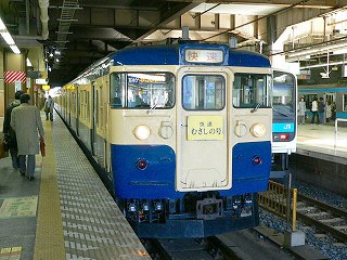 どんぶりをカウンターに返したら構内放送が聞こえた。快速むさしの2号は3番線、東北本線の上りホームだ。案内板を確認して階段を下りると、ちょうど電車が入線するところだった。115系という古い電車で6両編成。青とクリームの塗りわけは中央本線の普通列車に用いられる姿だ。片側3扉、ドア付近以外の座席は向かい合わせのボックスシートになっている。進行方向に座って発車を待つ。八王子までは1時間の乗車だが、ちょっとした旅気分である。