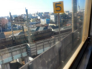 08時51分。むさしの2号はゆっくりと走り出した。面白いことに、右隣の高崎線ホームからも上野行き普通列車が発車した。上野行きはぐんぐんと加速する。こちらは徐行のままポイントを渡り、ひとつ線路を移って上野行きに寄り添った。もちろんこのまま東北本線に進入したら接触してしまう。むさしの2号は下り坂に入り、右隣の線路を潜り抜け、少しスピードを上げた。上野行き列車はこちらの頭上を跨いでいる。むさしの2号はもう貨物線に入ったようだ。さいたま新都心駅を通過したけれど、こちらの線路にはホームがない。