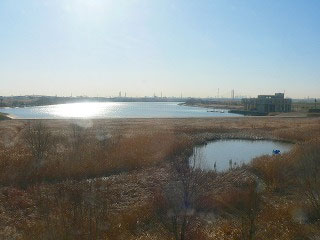 荒川の手前の彩湖。貯水池である。