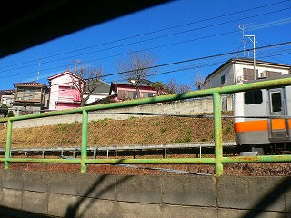 新座を通過し、関越道をくぐって東所沢に停車。ここからもかなりお客さんが乗ってきた。4人がけを占領していた私のボックスも、向かいの席に私と同世代の奥様ふたりを迎え入れた。盗み聞きするつもりはないが、会話が耳に入ってくる。「変わった電車ね」「ちょっと古い電車ね。銀色じゃないし」「車内に広告がないわ。古い電車だからかしら」「武蔵野線はいろんな電車が走っているのよ」「そういえば鎌倉や日光行きの直通なんてのもあったわね」という調子だ。この電車が八王子行きだと承知で乗っているのだろうか。おしゃべりに夢中で車内放送に気付いていない。人事ながら心配になるが、いきなり口を挟まれても疎ましいだろうから黙って外を眺めている。武蔵野の景色もいいし、電車や貨物列車と何度もすれ違うので飽きない。
