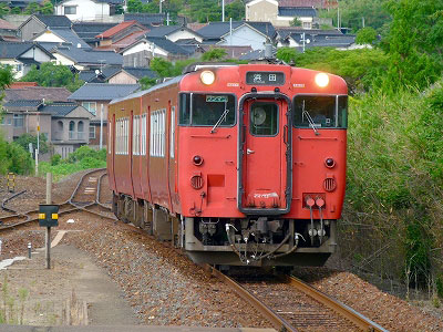 その次は温泉津。ゆのつ、と読む。津は港。温泉もあり港もあり。山と海のいいとこ取り。街の規模は小さいようで、駅舎はこぢんまりとした赤い屋根。実は湯治場として1300年以上の歴史があり、大国主命がウサギを治癒したという伝説もあるという。なるほど特急が停まるだけのことはある。ここで10人ほど降りた。キャスター付きのカバンを転がす人もいる。長期滞在の構えである。
