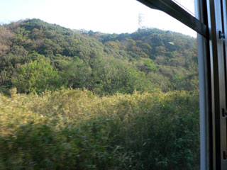みさき公園駅からさらに南下。南海本線はここから海を離れて丘陵地帯をゆく。山の緑は夏の盛りを過ぎて色褪せている。しかし、色づき始めた木々もあって、山肌にちらほらと黄色が見える。とりたてて言うほどのこともない、地味な風景のようでいて、緑色の明暗や日なたと日陰の光の差が風景に変化を与えている。海や空がいつも同じ青色ではないように、山の緑も同じ色はひとつもない。私は長良川鉄道で見た春の山肌を思い出した。